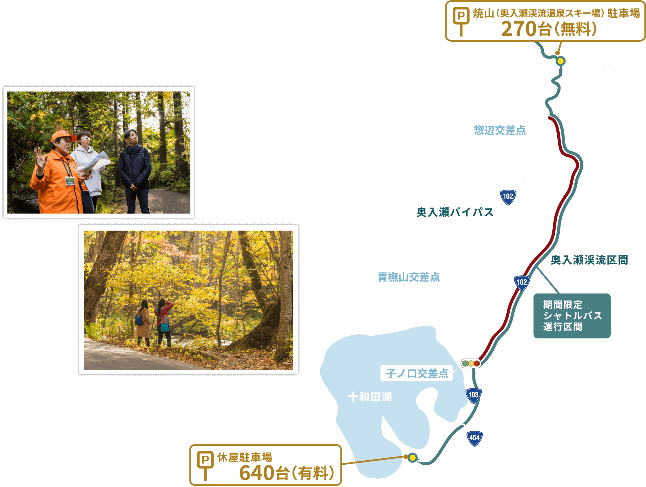 駐車場に車を停めて、奥入瀬渓流を散策しよう!